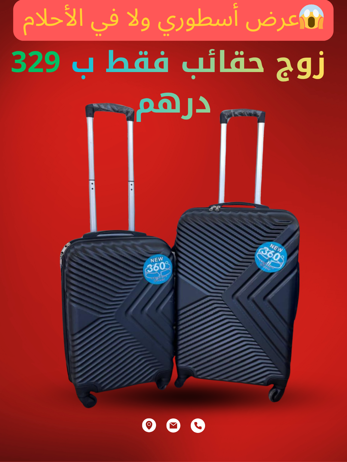 خد حقيبة كبيرة 20kg + حقيبة متوسطة 10kg بثمن 329 درهم فقط. شكل أنيق، تنظيم أحسن، وعجلات 360° كتخلي الحركة خفيفة فالسفر.